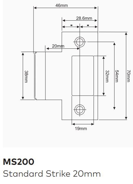 DORMAKABA MS200 MS SERIES STANDARD STRIKE 20MM SSS