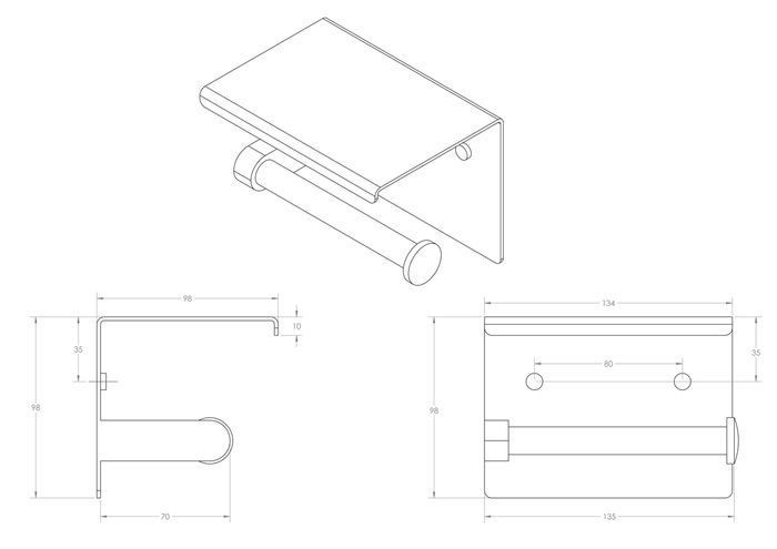 - Multifunctional unit with shelf top. Upper can hold mobile phone or bag whilst lower holder is for toilet paper roll. Seamless welds and rolled edges