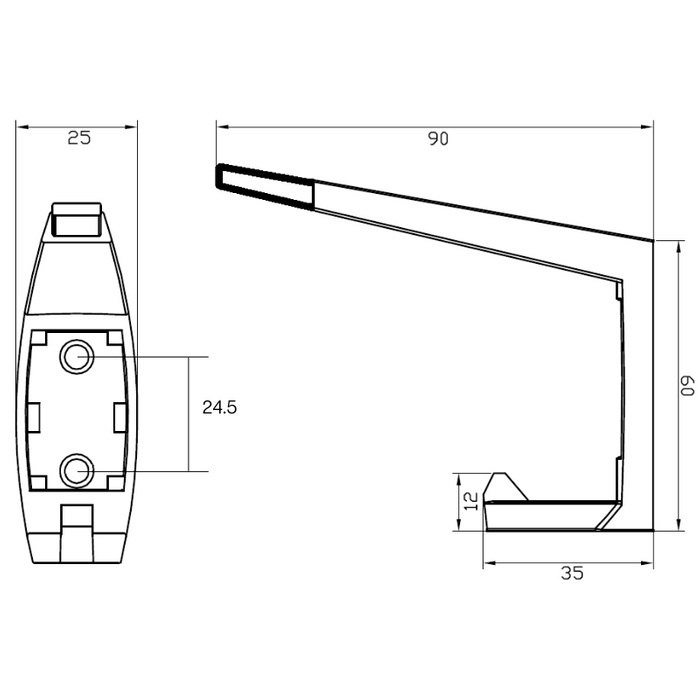 - Height: 60mm x Width: 25mm x Projection: 90mm
