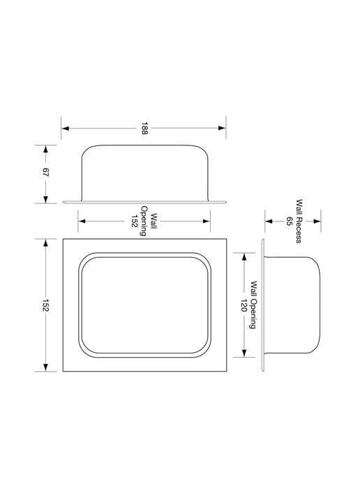 - WALL OPENING: 148mmW x 112mmH x 65mmD