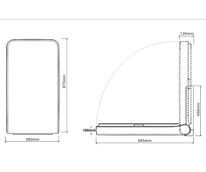 - Closed: 870mmH x 480mmW x 126mmD