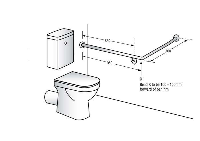 METLAM ACC LH 30° GRAIL C/FIX REAR WALL MNT SSS