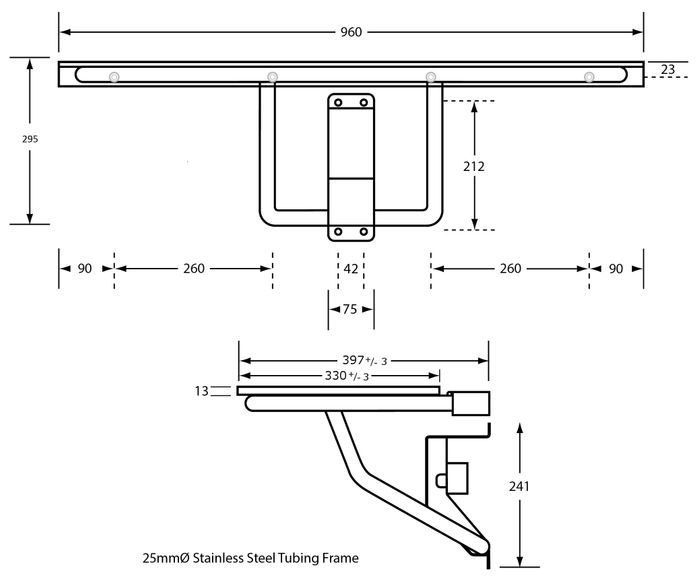 - 304 Satin Stainless Steel Frame and Support Arm- 25mmØ Tube