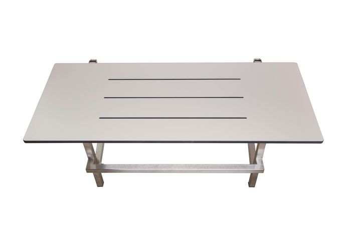 METLAM CHANGING PLACES FOLDING SHOWER SEAT 960MM L X 450MM W WITH 12MM PHENOLIC SEAT TOP WITH HANDLE & SATIN STAINLESS STEEL FRAME