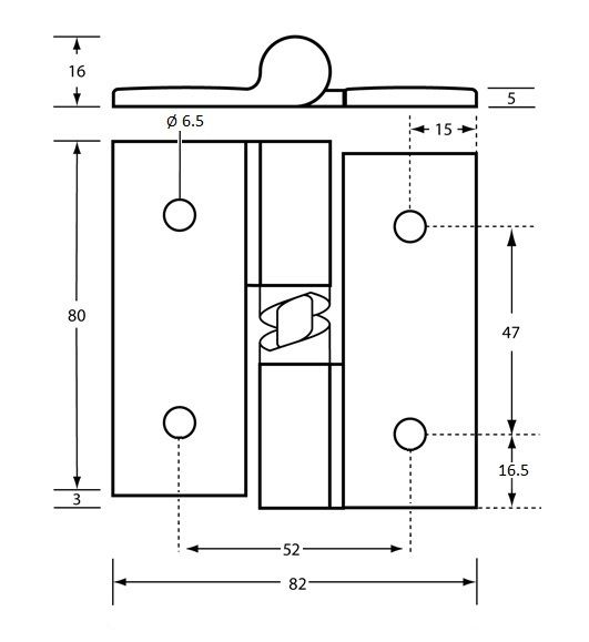 METLAM 106B GRAVITY HINGE (EACH) - WITH BOLT THROUGH FIXINGS