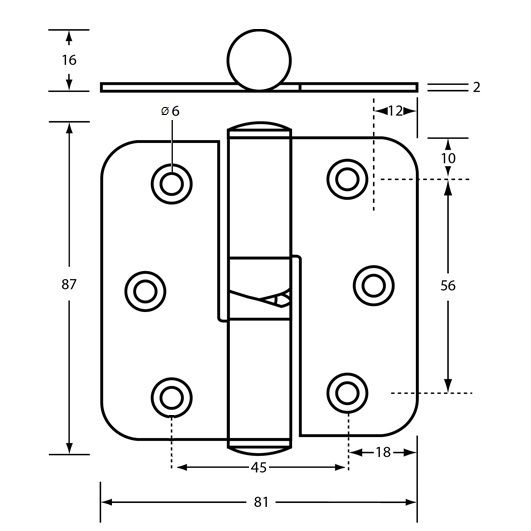 METLAM 207C GRAVITY HINGE (EACH) - WITH BOLT THROUGH FIXINGS