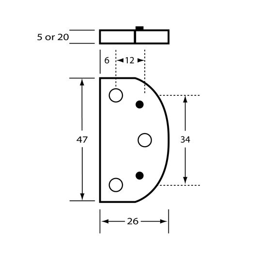 47mm x 26mm 34mm Centre to Centre