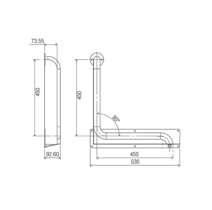 CON-SERV ANTI-LIGATURE 90º GRAB RAIL 450X450 RH BS