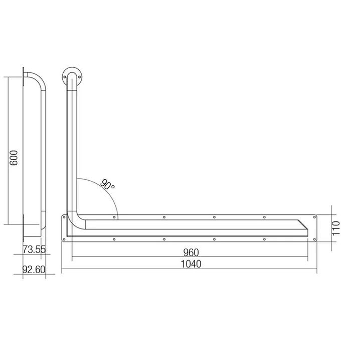 CON-SERV ANTI-LIGATURE GRAB RAIL 960X600MM RH BS