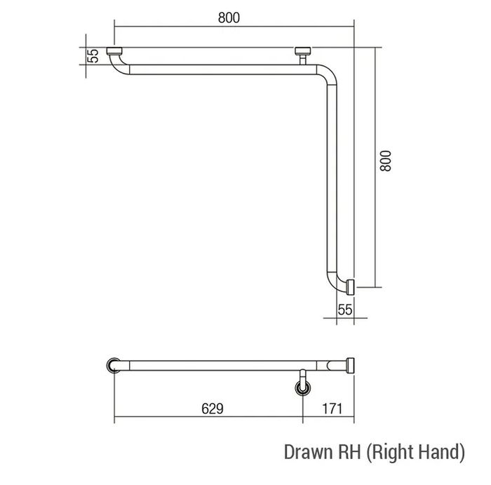 CON-SERV HYGENIC SEAL CORNER GRAB RAIL 800X800 RH PS