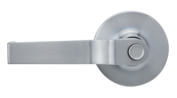 - Internal: Operating lever unlocks push button. Closing door does not release push button.