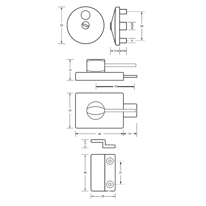 METLAM 300 SERIES AMBULANT LOCK & INDICATOR SET - CONCEALED SCREW FIX