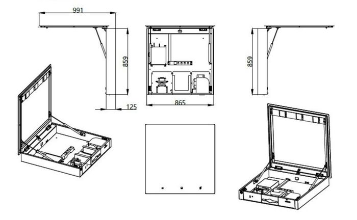 - Dimensions: 865mm W x 859mm H x 125mm D