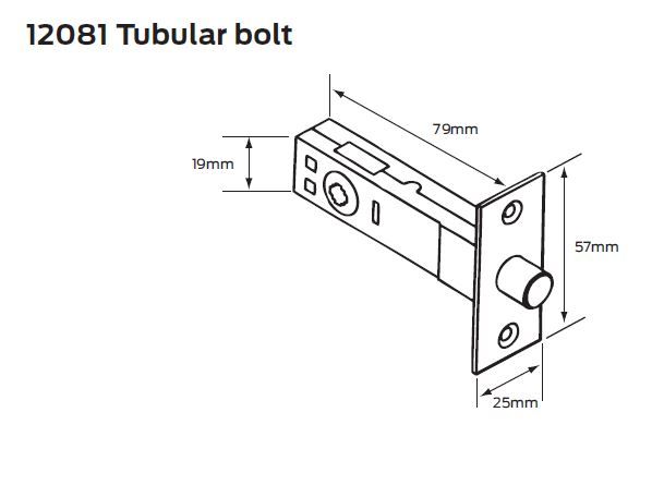 TUBULAR MORTICE BOLT 4.5mm SPINDLE W/ SCREWS