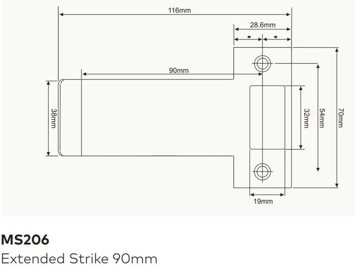 DORMAKABA MS206 MS SERIES EXTENDED STRIKE 90MM SSS
