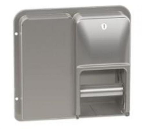 - Double-sided unit includes single-roll dispenser with roll-in-reserve serving compartment